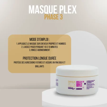 - Masque Reconstructeur Plex Phase 3 : Prolonge les bienfaits des deux premières phases en nourrissant et en hydratant profondément les cheveux après chaque lavage.